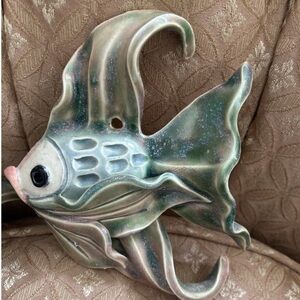 Enhance your space with this elegant ceramic fish wall decor. Featuring a blend of green and blue hues, these pieces add a touch of aquatic charm to any room.
