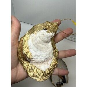 These ornaments are crafted on some super large oyster shells please see measurements in pictures. They are in plastic gift bags with bows and are brand new. Comes from a smoke free home.