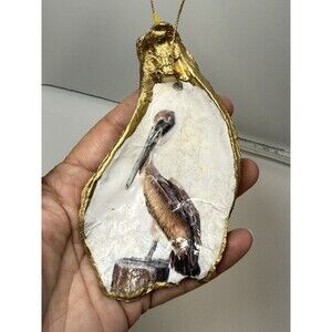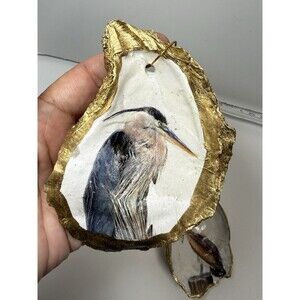 This set of 2 handcrafted decoupage decorative Heron & Pelican oyster shell ornaments is a unique addition to any collector's holiday or seasonal decor. The ornaments feature intricate designs of birds, specifically a blue heron & a brown pelican , and are perfect for adding a touch of elegance and charm to your coastal cottage space. The handcrafted aspect of these ornaments adds to their charm and makes them a special piece for any bird or nature enthusiast. Each ornament is beautifully crafted and will surely be a standout piece in your collection.
