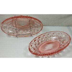 Set Of 2 Imperial Glass Pink Little Jewel Diamond Block Depression Celery Dish