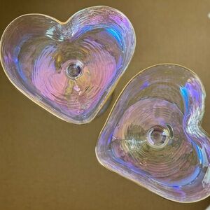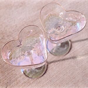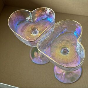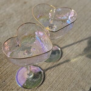 Set Of 2 Iridescent Heart Shaped Coupe Cocktail Glasses with Gold Rim