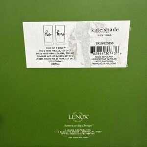New Open box never Used! set of 2 Kate Spade Highball Crystal Glasses, His and Hers , each holds 17oz, made in Poland by Lenox. Both glass has been unwrapped but never used.
