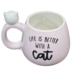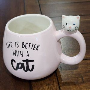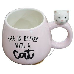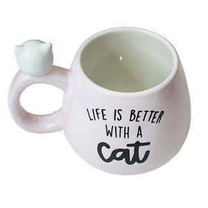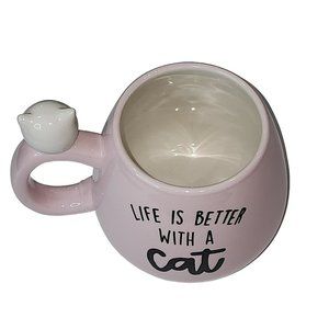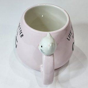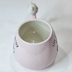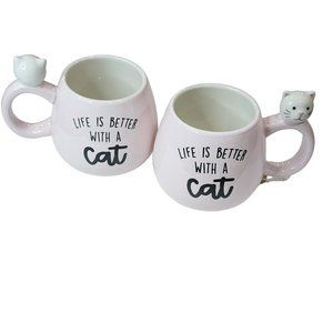 Set Of 2 Kitten Figurine Pink Ceramic Coffee Mug 16Oz Life Is Better With a Cat