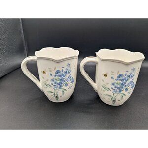These Lenox Butterfly Meadow mugs feature a nature-inspired design with delicate flowers and insects. Perfect for enjoying beverages in an elegant and timeless style.