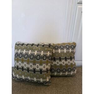 Set Of 2 MCM Style Gray Gold Cream Geometric Link Pillow Shams 17x17 PlutusStyle