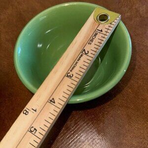 These green Mainstays bowls are versatile for various meals, crafted from stoveware material. They are designed for ease of use, being both dishwasher and microwave safe. • Set of 2 Smal bowls • Dishwasher safe • Microwave safe • Stoveware material • Made in China • Dimensions: 3 inches in diameter, 1.5 inches in height Top to bottom = 2 inches Diameter = 4 inches