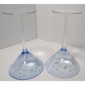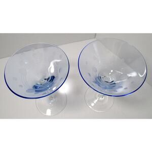 Set Of 2 Martini Glasses Blue Hand Blown 4 Ounces Each.
