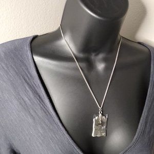 Set Of 2 Metal Rectangular Pendant Faith Necklaces Adjustable 18.5 To 20 Inches