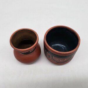 Set Of 2 Miniature Terracotta Clay Pots With Geometric & Tribal Maya Patterns