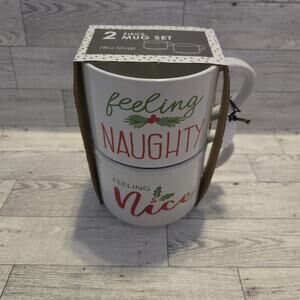 Set Of 2 Naughty Or Nice Stackable Holiday Christmas Mugs Boston Warehouse New