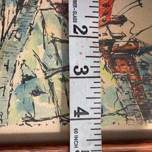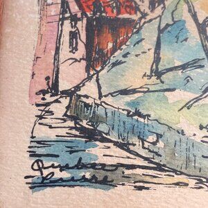 Set Of 2 Painting wall art prints of Quebec Scene Small Mini Artwork Aged yellowing Patina Cottage Signed