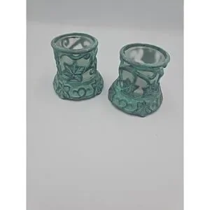This product is a set of 2 Partylite Ivy Garden Verdigris 3-1/4 Votive Holders in a Tuscan style. Made by PartyLite, these candle holders are designed for use with candles and add a decorative touch to any space. The verdigris finish gives a weathered and rustic look, perfect for creating a cozy ambiance in a home or outdoor setting.