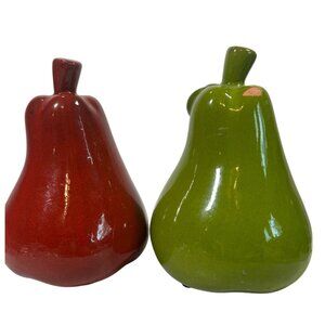 Set Of 2 Pear-Shaped Ceramic Figurines 7" Bright Green & Red Fruit Cottage Core