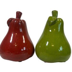 Set Of 2 Pear-Shaped Ceramic Figurines 7" Bright Green & Red Fruit Display Decor Cottage Core Granny Core Farm Core