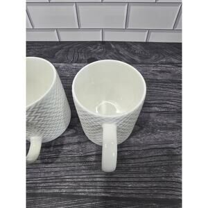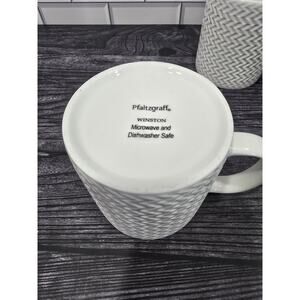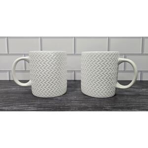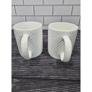 Set Of 2 Pfaltzgraff Winston White Embossed Chevron Woven Pattern Coffee Mugs