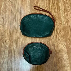 Vintage, lot of 2 in a faux leather green and brown trim. Gently used.