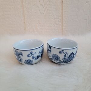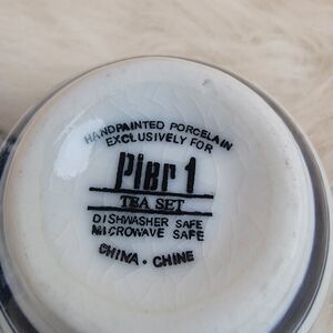 Set Of 2 Pier 1 Imports Hand Painted Tea Cups White w/ Blue Floral Paisley Print