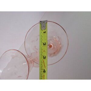 These elegant wine glasses feature a delicate etched floral design on a pink hue, adding a touch of sophistication to any table setting. Their vintage appeal and charming color make them a standout addition to glassware collections, perfect for evening gatherings or as a decorative piece in the home.