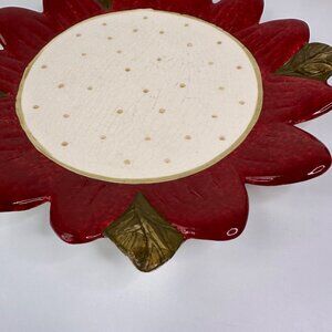 Set Of 2 Red Sunflower Shaped Ceramic Plates With Polka Dot Center Chic Boho 10"