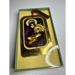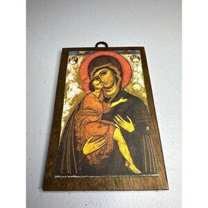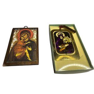 Set Of 2 Religious Icons showing Virgin Mary Child 24K Gold Plated Wooden Plaque