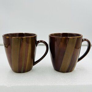 Set Of 2 Sango Avanti Brown Coffee Cup Mug Stoneware Stripes Sand Retired #4722. These mugs are in great condition, no chips, cracks or stains.