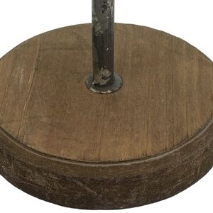 Set Of 2 Shabby Chic Farmhouse Country Galvanized Metal Rose Hurricane Glass & Wooden Stand Candle Holders. Also makes for great candy/food dishes during an event or nice wide neck floral vases. Distressed aged finish throughout. Excellent pre-owned condition.