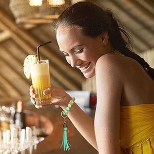 Silicone Key Ring Bracelet Beaded Bangle Wristlet+NoTouch Bottle Opener Keychain