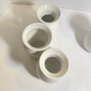 These ceramic vases provide a versatile option for floral arrangements or standalone displays. Their neutral white color complements various decor styles effortlessly. There are 3 vases attached to each other in a unique way and comes with 2 sets of them. so unique and fun!