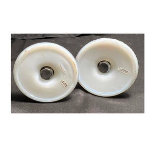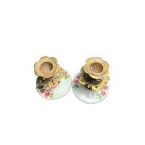 Set Of 2 Vintage Brass Milk Glass Hand-painted Floral Art Deco Candlestick