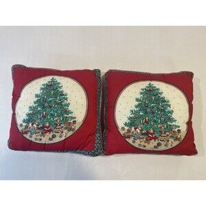 Set Of 2 Vintage Christmas Tree Throw Pillows Square 15”