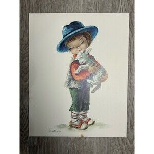 Set Of 2 Vintage Constanza Prints Child With Lamb & Child With Shoes MCM Spain