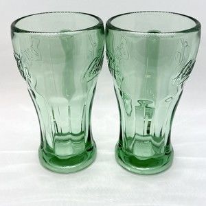 Set Of 2 Vintage Green Coca-Cola Glasses With Handle Mugs 14 oz Heavy. Minor flaw on one of the glasses on edge of rim. See pic 10 for details.