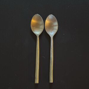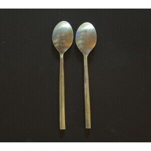 Set Of 2 Vintage Heavy Stainless Steel Teaspoons Minimalist Modern Design India