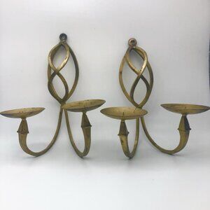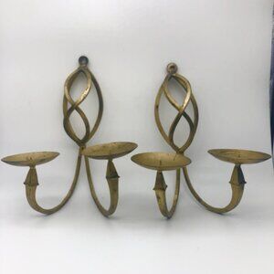 Set Of 2 Vintage Hold Wrought Iron Wall Sconces Scroll Pillar