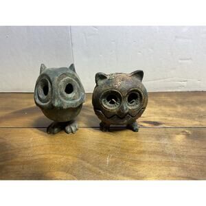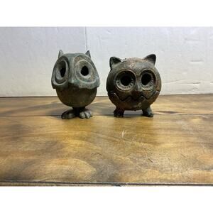 Set Of 2 Vintage Japanese Brass Owl Mid-Century Era Cast Iron