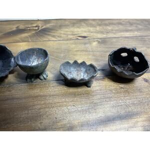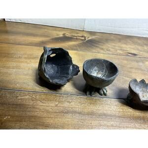 This set of 2 vintage Japanese brass owl candle holders from the mid-century era features a patinated bronze finish. Made of brass and cast iron, these medium-sized, round lantern-shaped holders are perfect for all occasions. Crafted in Japan in the 1960s, they exude a charming vintage appeal and can be cleaned with a damp cloth for easy maintenance. The unboxed pair adds a touch of nostalgia to any room, making them a unique and original addition to any decorative collection.pre owned good condition we ship fast