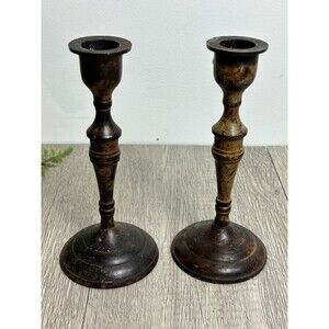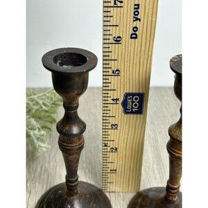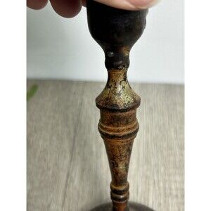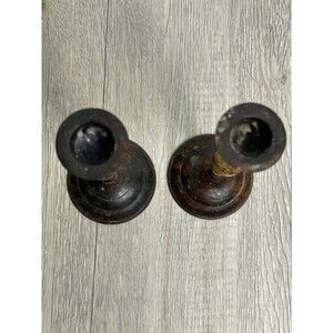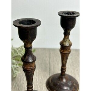 Set Of 2 Vintage Metal Candle Holders India Patina Rustic For Taper Candles 6”