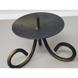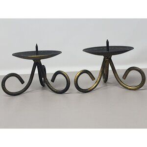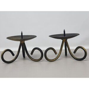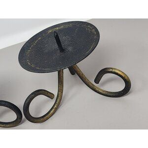 Set Of 2 Vintage Pillar Candle Holders Metal Tripod Black & Brown