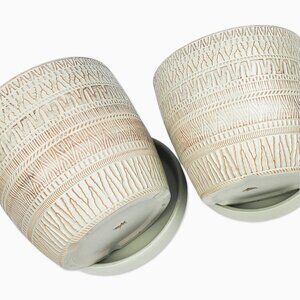 This is a beautiful set of 2 terracotta planting pots, each beautiful pots comes with a drainage hole as well as a matching colored pot saucer. A perfect new addition to your current garden or a fresh new start