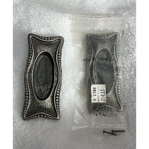 Add a touch of vintage elegance to your windows or pocket doors with this set of two Y2K reproduction window pulls/pocket door pulls featuring beaded trim. Made of durable cast iron, these pulls are in excellent condition and are new old stock. The gothic shape and gray color make them perfect for those who love antique and architectural elements in their home decor. These pulls were made in the 1990s by Renovators Supply and are a vintage reproduction. Don't miss out on adding these unique and stylish pieces to your collection.