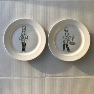 The plate with the chef and spaghetti has a tiny spot on the bottom from normal shelf wear/use but otherwise great preowned condition