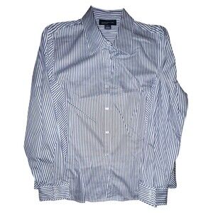This set of 2 Women's Jones New York Signature Button Down Blouses in size XL features a classic fit with a striped pattern in a multicolor design. Made from lightweight cotton material, these blouses are suitable for various occasions including travel, weddings, parties, casual wear, formal events, workwear, and business meetings. The long sleeve, button closure, and button-down collar make them versatile pieces for all seasons, perfect for the office or designer look. With the brand's reputation for quality and style, these blouses are a great addition to any woman's wardrobe.