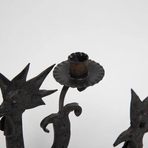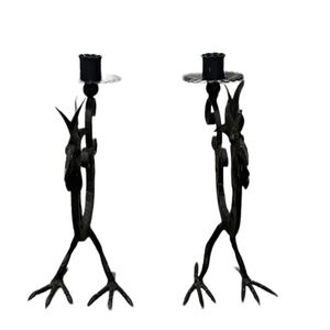 Set Of 2 Wrought Iron Rooster Candlestick Holder Horshoe Folk Art