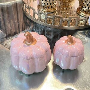 Set Of 2 pink and gold pumpkin Candle 17.6 Oz and 9.8 Oz