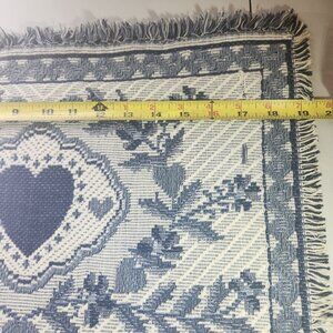 Set Of 2 placemats Vintage Blue & White Heart Floral Woven Fringe cottagecore
