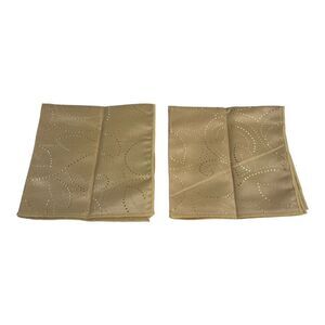 Set Of 2 Gold Satin Feel Formal Napkins Leaf Design Cloth 18.5 Hollywood Regency