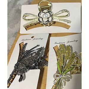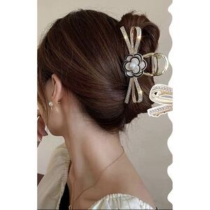 Exquisite Design This claw clips variety pack include a 4.3 inches gold Wheat shape,a Camellia shape,and a 4 inches tarnish gray butterfly hair clips.Pearls or rhinestones inlaid in metal claw clip,which is perfect aesthetic accessories for women,whatever in your daily use or special occasion, such as wedding,party,date.