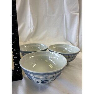 Set Of 3 Blue & White Ceramic Bowls With Abstract Pattern
