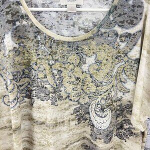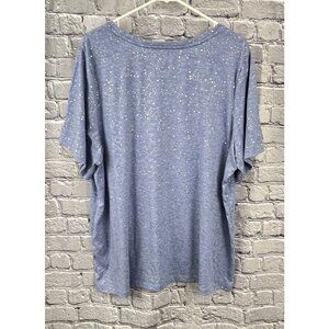 Set Of 3 CJ Banks Womens Short Sleeve Tops 2X Blue & Beige With Sparkle & Print