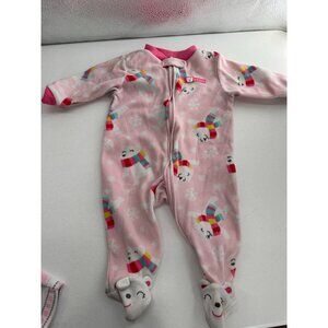 Set Of 3 Carters Baby Girl Holiday-Themed Sleepers 6M Pink Fleece Cotton Footed
